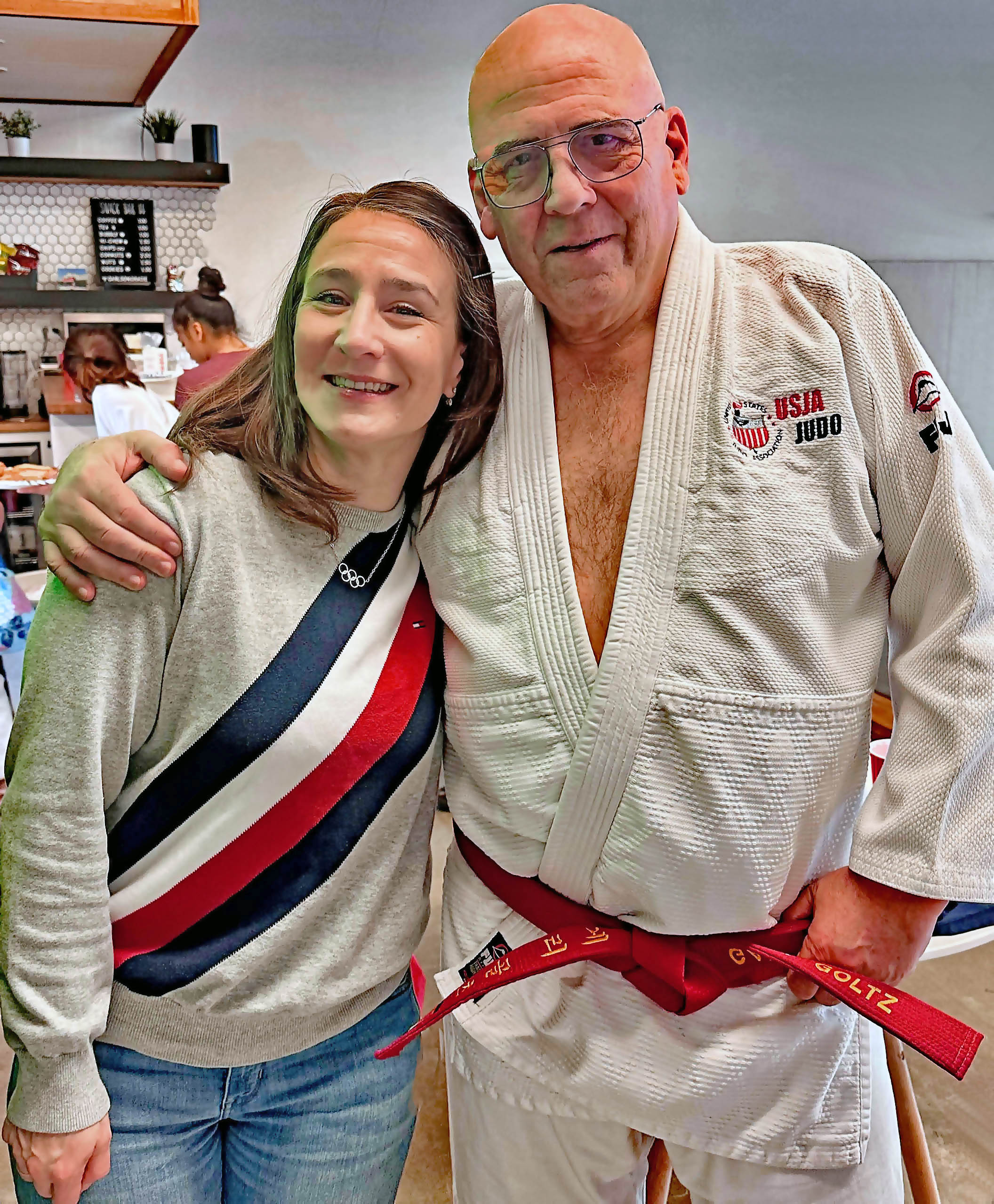 Sensei Gary, Jim Bregman 1964 Olympic Medalist 10th Dan, & Yonah Melnik Israeli Coach, and with Yarden Gerbi 2016 Olympic Medalist